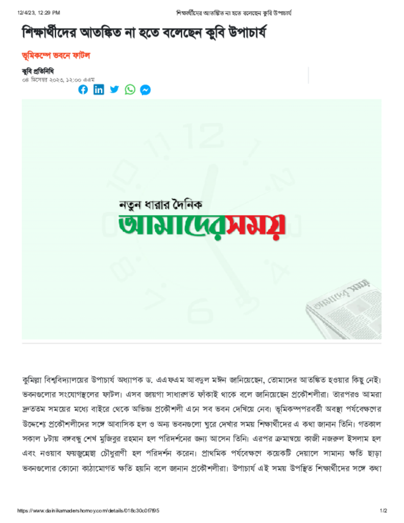 শিক্ষার্থীদের আতঙ্কিত না হতে বলেছেন কুবি উপাচার্য Published on 04 December 2023 Newspaper দৈনিক আমাদের সময় Category Personal Opinion / Discussion / Commentary Download