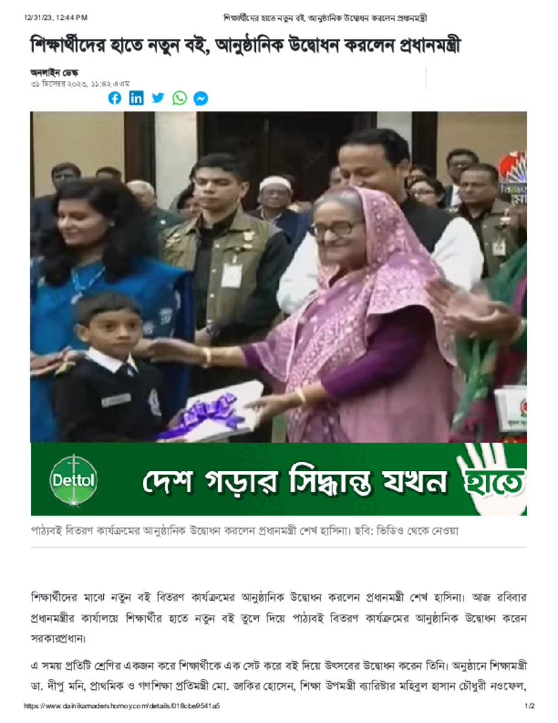 শিক্ষার্থীদের হাতে নতুন বই, আনুষ্ঠানিক উদ্বোধন করলেন প্রধানমন্ত্রী Published on 31 December 2023 Newspaper দৈনিক আমাদের সময় Category Book Day Download