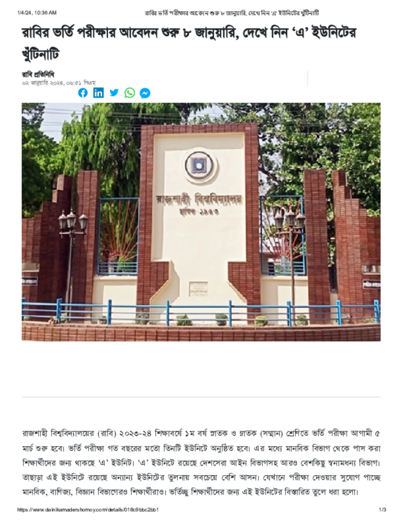 রাবির ভর্তি পরীক্ষার আবেদন শুরু ৮ জানুয়ারি, দেখে নিন ‘এ’ ইউনিটের খুঁটিনাটি Published on 02 January 2024 Newspaper দৈনিক আমাদের সময় Category Admission / Seat Problem General Education Download
