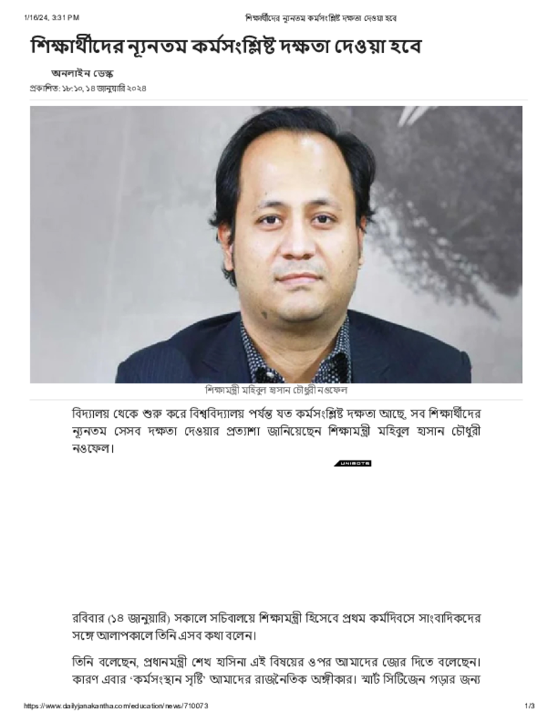 শিক্ষার্থীদের ন্যূনতম কর্মসংশ্লিষ্ট দক্ষতা দেওয়া হবে