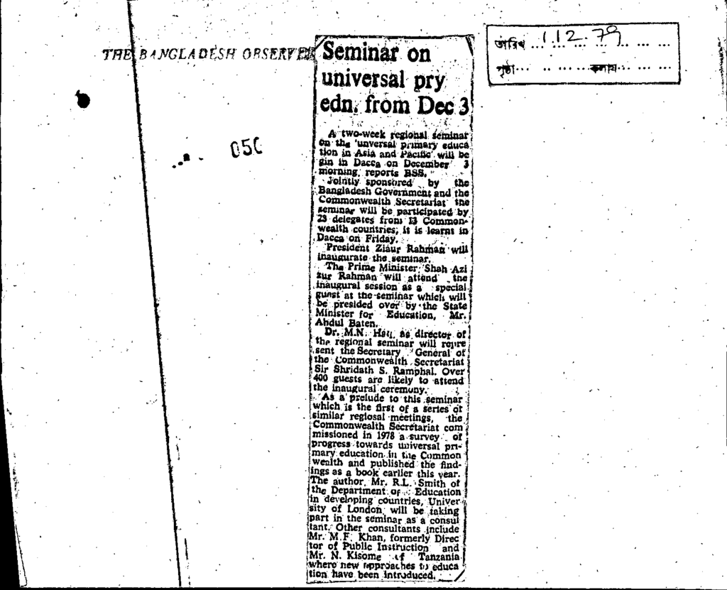 Rraining on primary eedn inargurated Published on Newspaper The Bangladesh Observer Category General Education Download