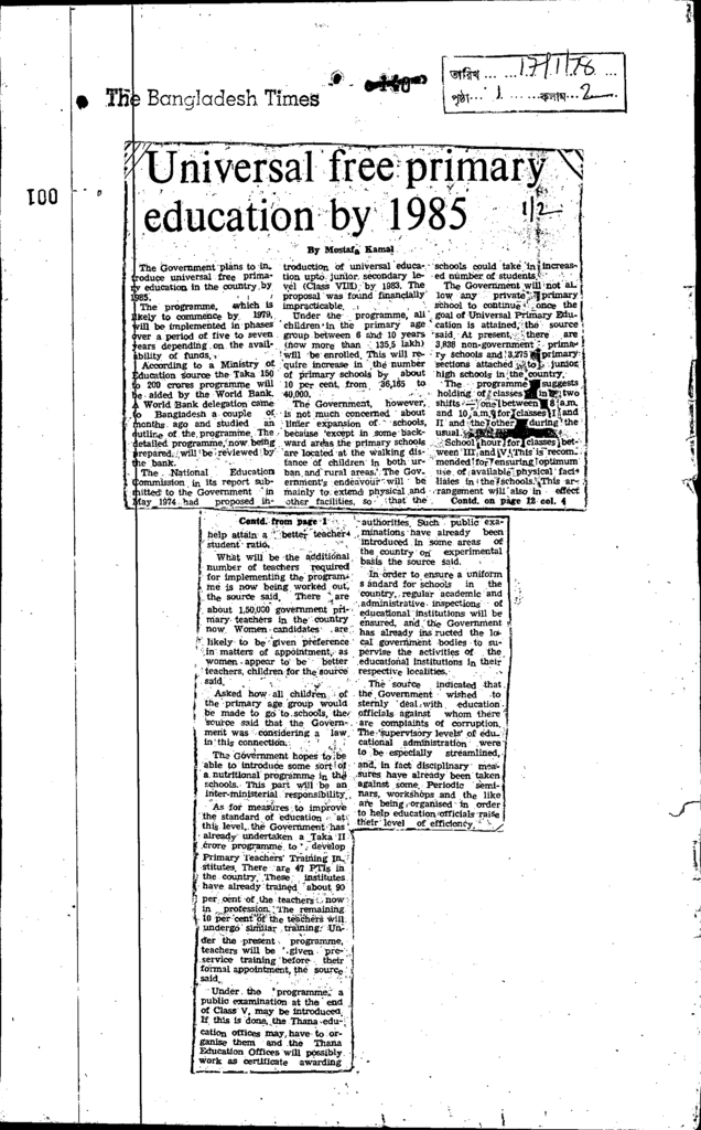 Univsrsal pry education piot project approved Published on Newspaper The Bangladesh Times Category General Education Download