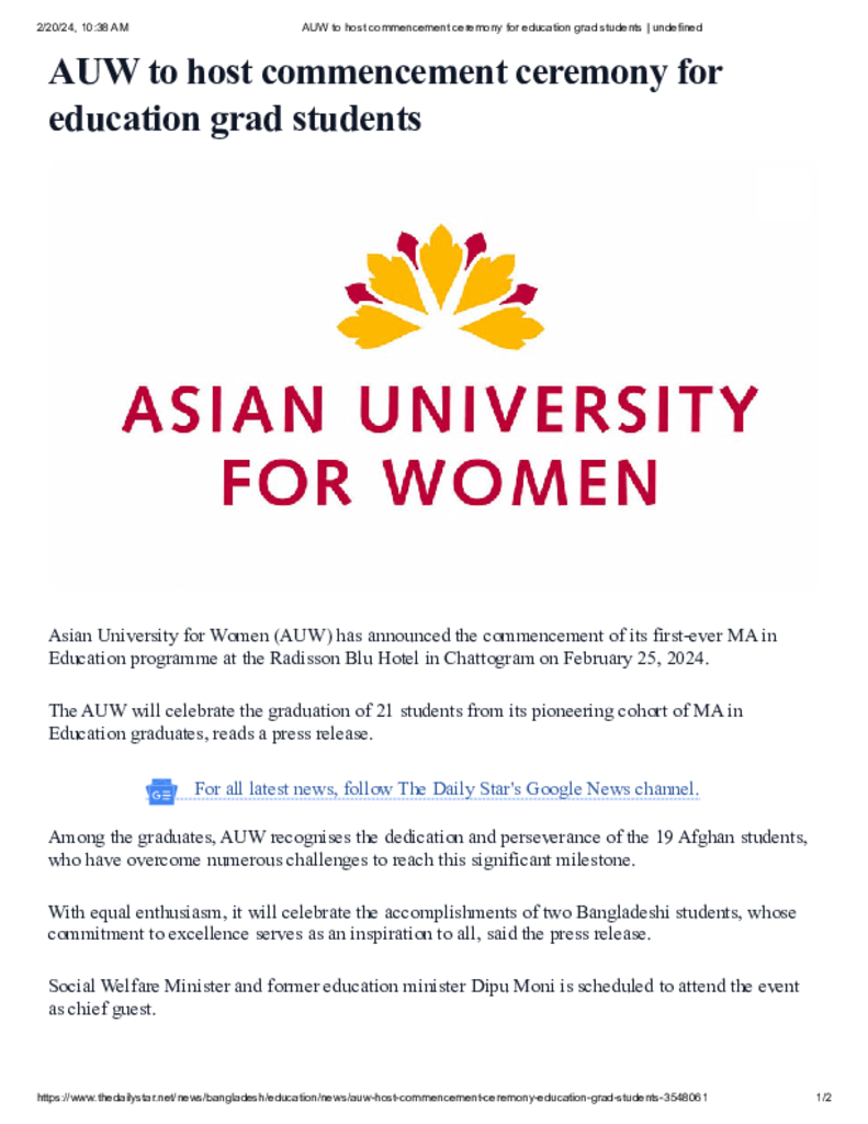 AUW to host commencement ceremony for education grad students _ undefined