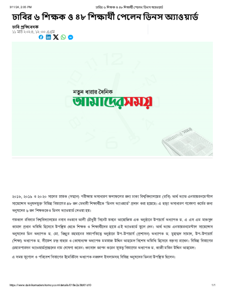 ঢাবির ৬ শিক্ষক ও ৪৮ শিক্ষার্থী পেলেন ডিনস অ্যাওয়ার্ড Published on 11 March 2024 Newspaper দৈনিক আমাদের সময় Category General Education General Education Download