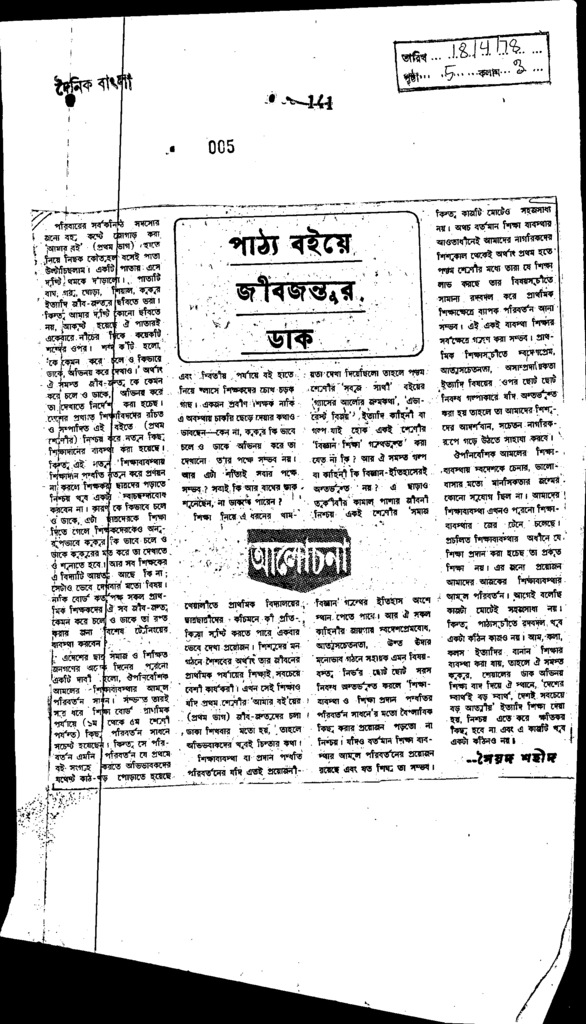 পাঠ্য বইয়ে জীবজন্তুর ডাক