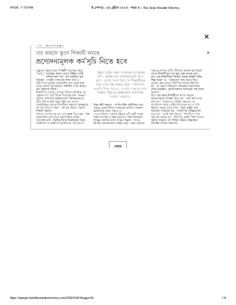 প্রণোদনামূলক কর্মসূচি নিতে হবে Published on 04 April 2024 Newspaper দৈনিক আমাদের সময় Category Personal Opinion / Discussion / Commentary Download