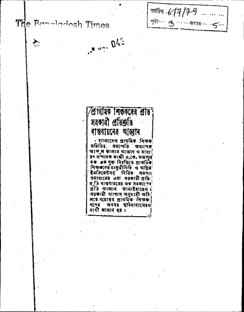 প্রাথমিক শিক্ষকের দায়িত্ব