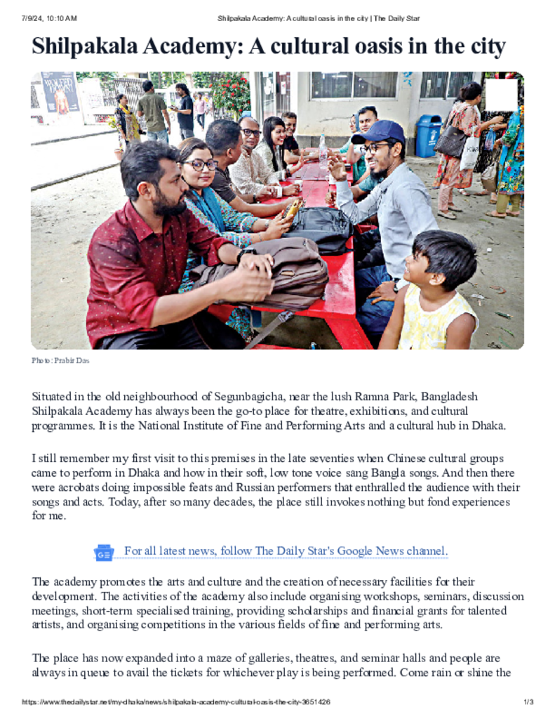 Shilpakala Academy_ A cultural oasis in the city _ The Daily Star.pdf Published on 09 July 2024 Newspaper The Daily Star Category General Education Download
