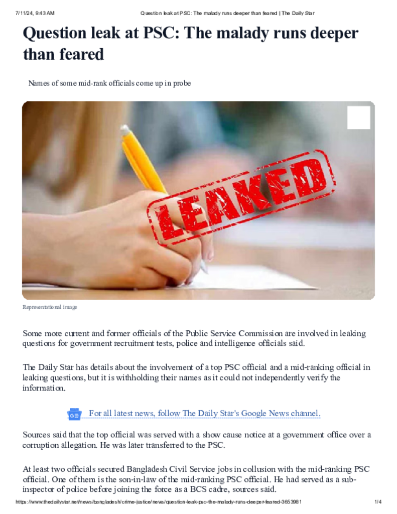 Question leak at PSC_ The malady runs deeper than feared _ The Daily Star.pdf Published on 11 July 2024 Newspaper The Daily Star Category General Education Download