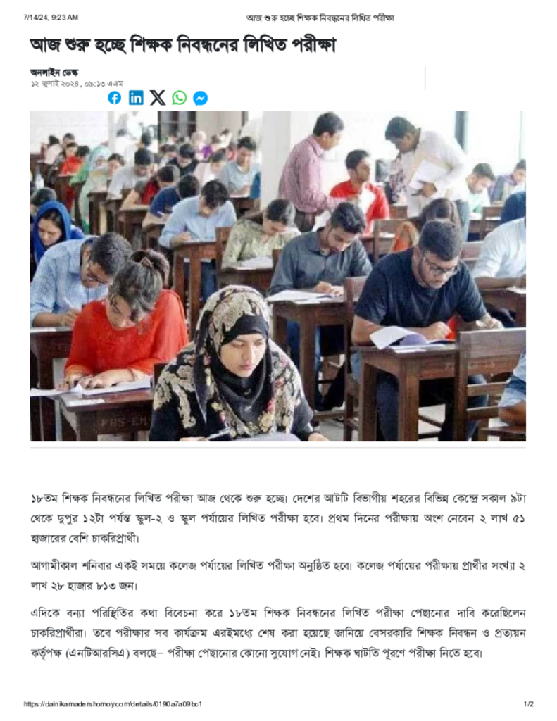 আজ শুরু হচ্ছে শিক্ষক নিবন্ধনের লিখিত পরীক্ষা.pdf Published on 13 July 2024 Newspaper দৈনিক আমাদের সময় Category Educational Ministry / Departments Download