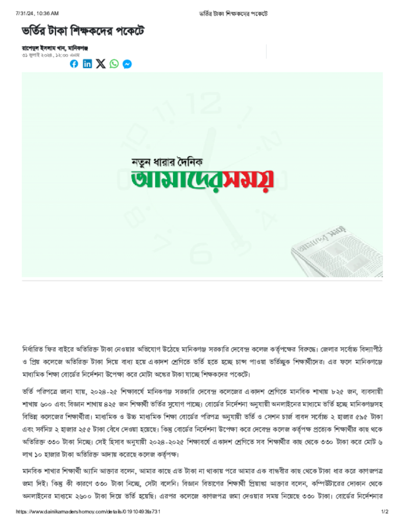 ভর্তির টাকা শিক্ষকদের পকেটে.pdf Published on 31 July 2024 Newspaper দৈনিক আমাদের সময় Category Admission / Seat Problem General Education Download