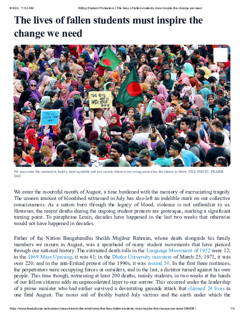 Killing Student Protesters _ The lives of fallen students must inspire the change we need.pdf Published on 04 August 2024 Newspaper The Daily Star Category General Education Download