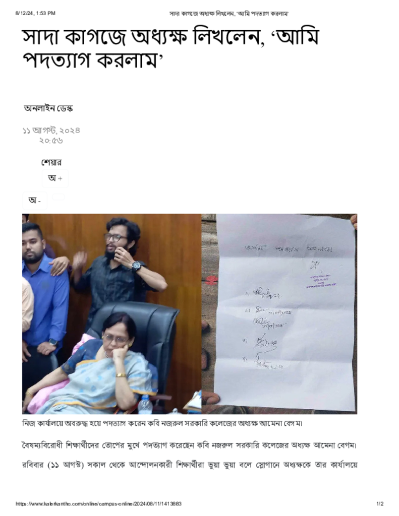 সাদা কাগজে অধ্যক্ষ লিখলেন, ‘আমি পদত্যাগ করলাম’.pdf Published on 11 August 2024 Newspaper দৈনিক কালের কন্ঠ Category General Education General Education Higher Education Public Download