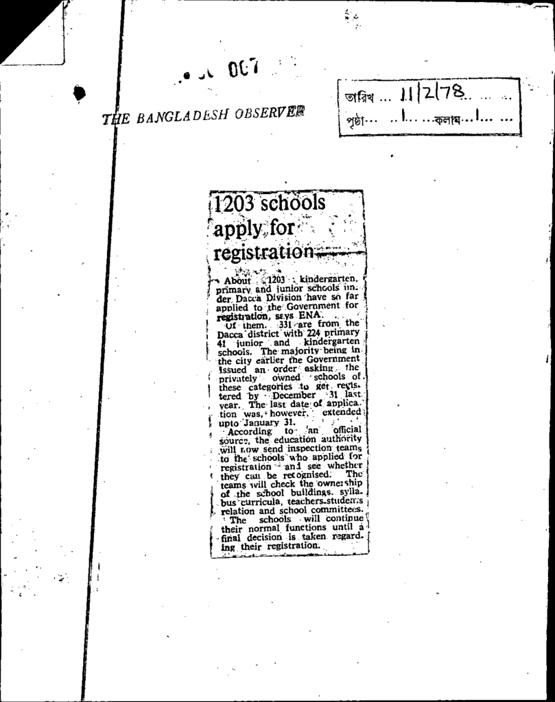 1203 school apply for registration Published on Newspaper The Bangladesh Observer Category General Education Download