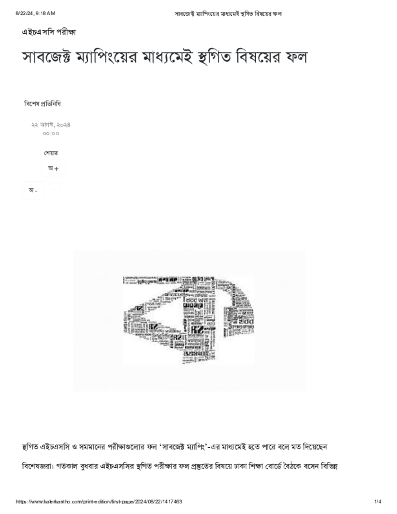 সাবজেক্ট ম্যাপিংয়ের মাধ্যমেই স্থগিত বিষয়ের ফল.pdf Published on 22 August 2024 Newspaper দৈনিক কালের কন্ঠ Category Educational Ministry / Departments Public Examination HSC Download