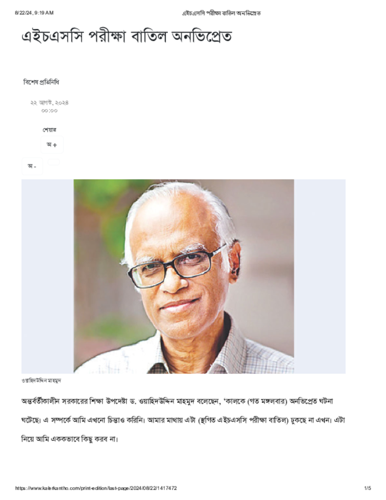 এইচএসসি পরীক্ষা বাতিল অনভিপ্রেত.pdf Published on 22 August 2024 Newspaper দৈনিক কালের কন্ঠ Category Educational Ministry / Departments Public Examination HSC Download
