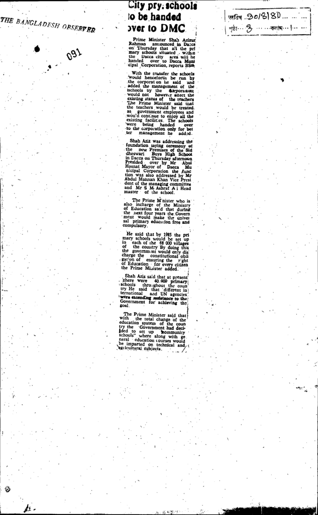 City pry schools to be handed over to dmc Published on Newspaper The Bangladesh Observer Category General Education Download