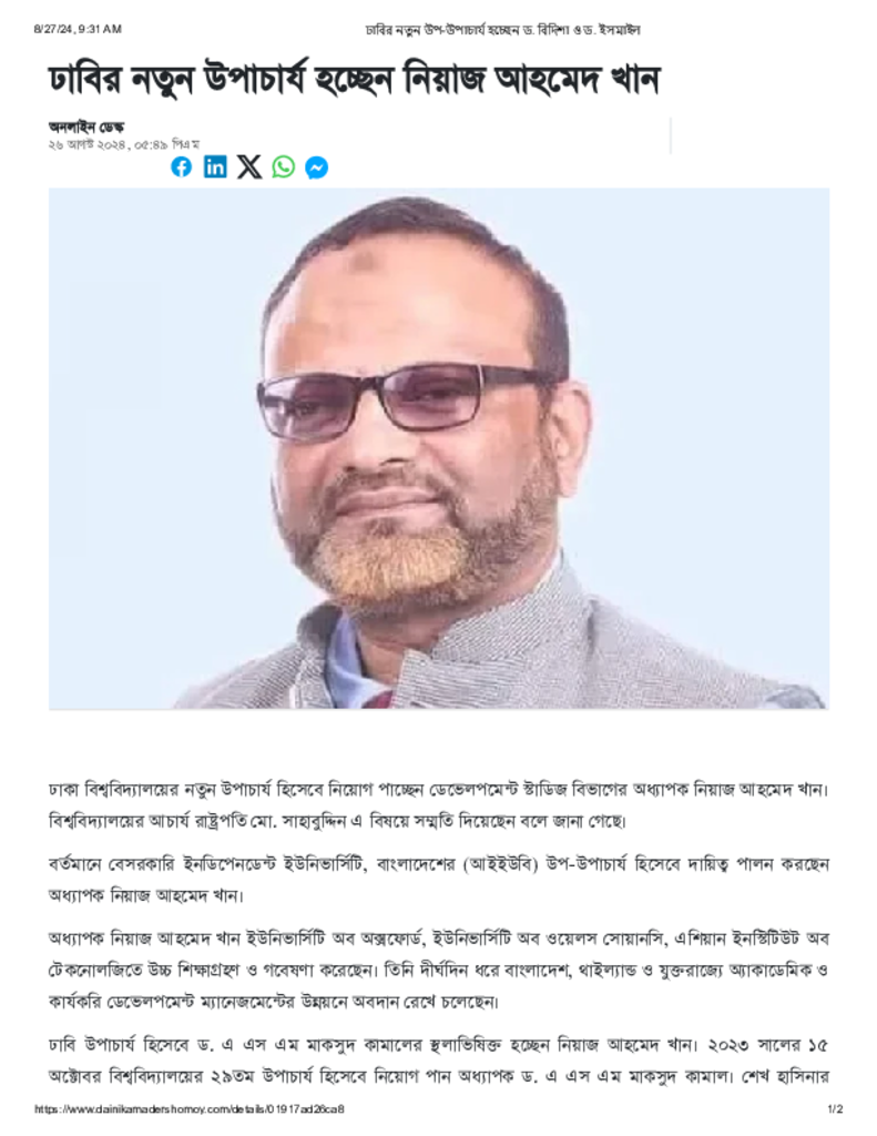 ঢাবির নতুন উপাচার্য হচ্ছেন নিয়াজ আহমেদ খান.pdf Published on 26 August 2024 Newspaper দৈনিক আমাদের সময় Category Educational Ministry / Departments General Education Higher Education Public Download
