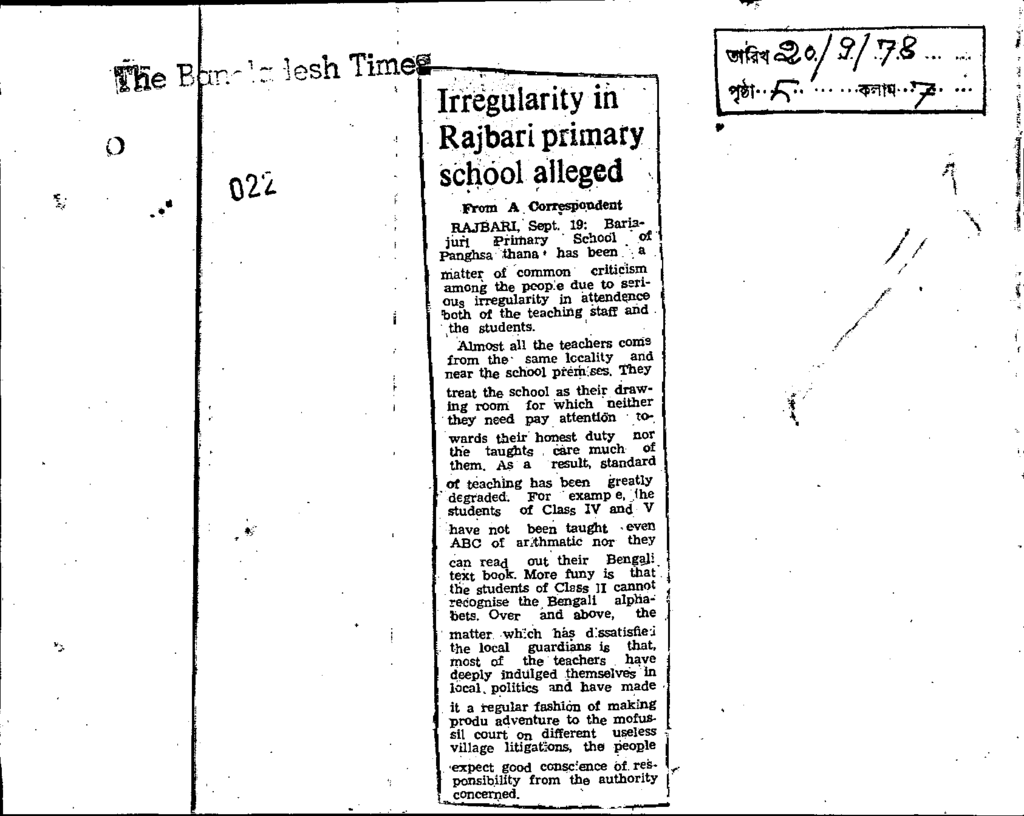 Irregrlarity in rajbari primary school alleged Published on Newspaper The Bangladesh Times Category General Education Download