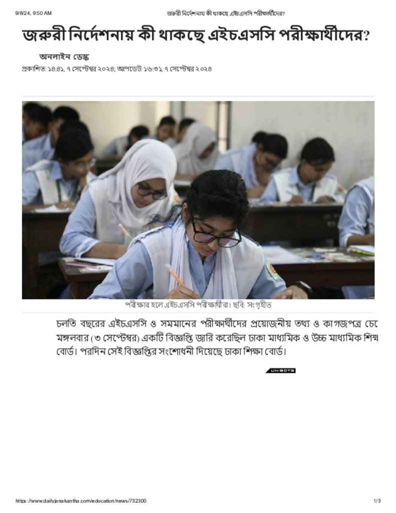 জরুরী নির্দেশনায় কী থাকছে এইচএসসি পরীক্ষার্থীদের_.pdf Published on 07 September 2024 Newspaper দৈনিক জনকণ্ঠ Category Educational Ministry / Departments Public Examination HSC Download