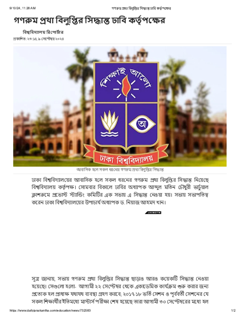 গণরুম প্রথা বিলুপ্তির সিদ্ধান্ত ঢাবি কর্তৃপ_ক্ষের.pdf Published on 09 September 2024 Newspaper দৈনিক জনকণ্ঠ Category Educational Ministry / Departments General Education Higher Education Public Download