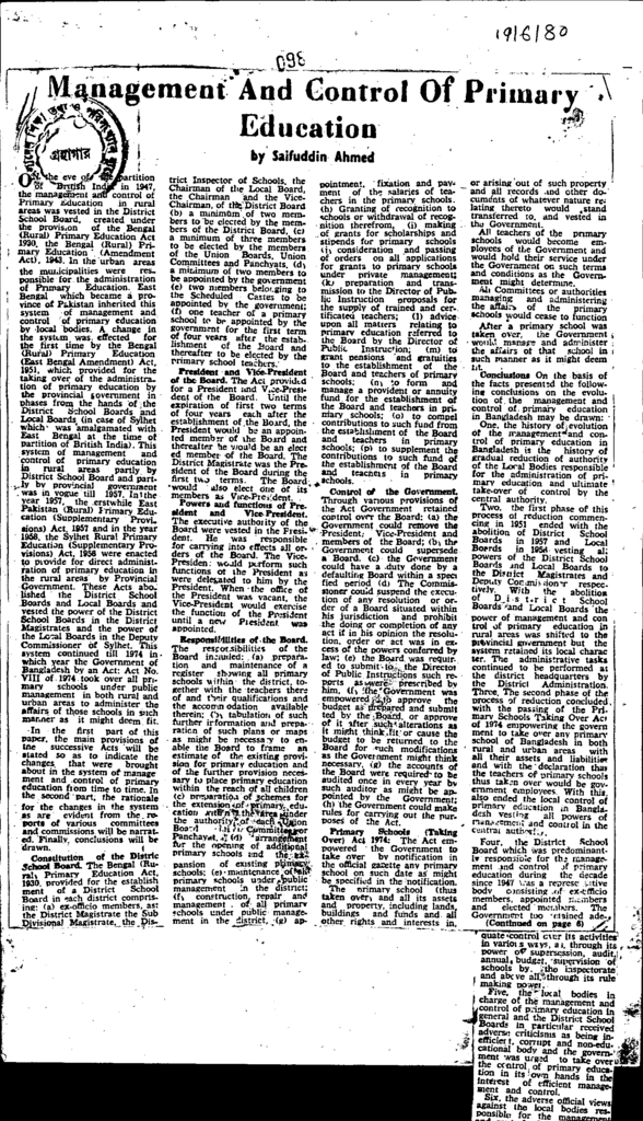 Management and contorl of primary education Published on Newspaper The Bangladesh Observer Category General Education Download