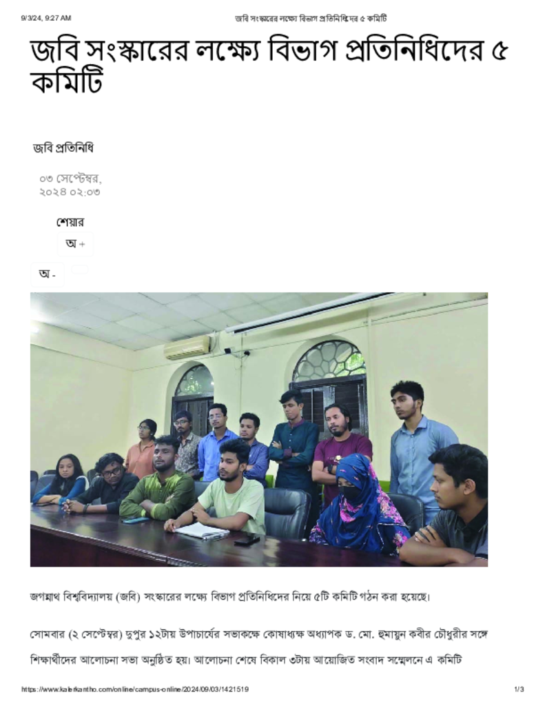 জবি সংস্কারের লক্ষ্যে বিভাগ প্রতিনিধিদের ৫ কমিটি.pdf Published on 03 September 2024 Newspaper দৈনিক কালের কন্ঠ Category General Education General Education Higher Education Public Download