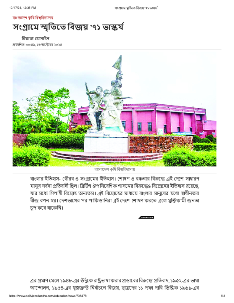 সংগ্রামে স্মৃতিতে বিজয় ’৭১ ভাস্কর্য.pdf Published on 13 October 2024 Newspaper দৈনিক জনকণ্ঠ Category Personal Opinion / Discussion / Commentary General Education Download