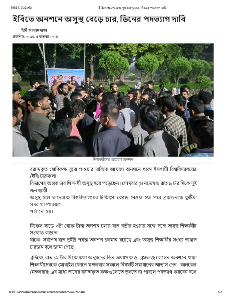 ইবিতে অনশনে অসুস্থ বেড়ে চার, ডিনের পদত্যাগ দাবি.pdf Published on 05 November 2024 Newspaper দৈনিক জনকণ্ঠ Category General Education General Education Higher Education Public Download