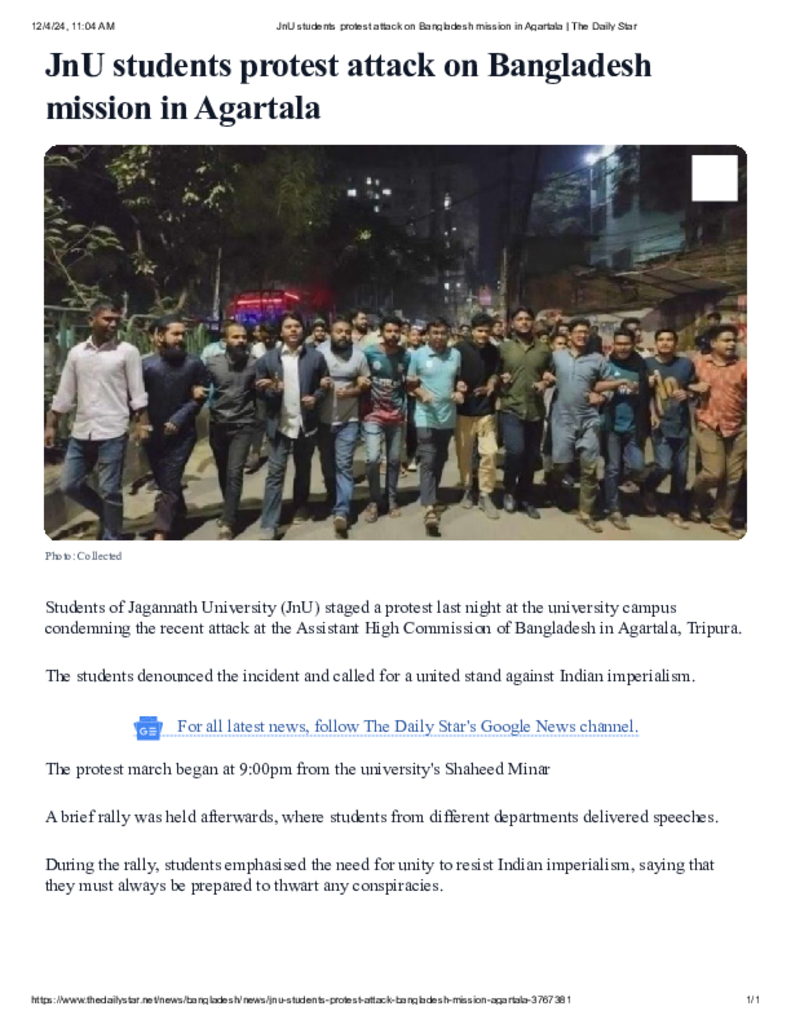 JnU students protest attack on Bangladesh mission in Agartala _ The Daily Star.pdf Published on 03 December 2024 Newspaper The Daily Star Category Others Download