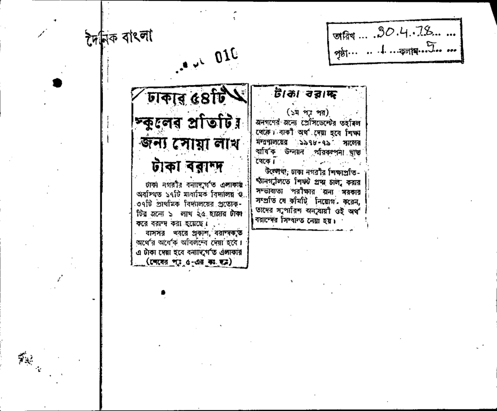 ঢাকার প্রা্থমিক স্কুলেগলে পৌর কর্পরেশন চলবে Published on Newspaper দৈনিক বাংলা Category General Education Download