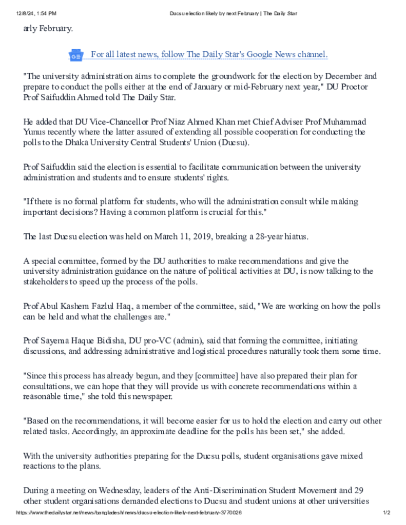 Ducsu election likely by next February _ The Daily Star.pdf Published on 07 December 2024 Newspaper The Daily Star Category Student Politics General Education Download