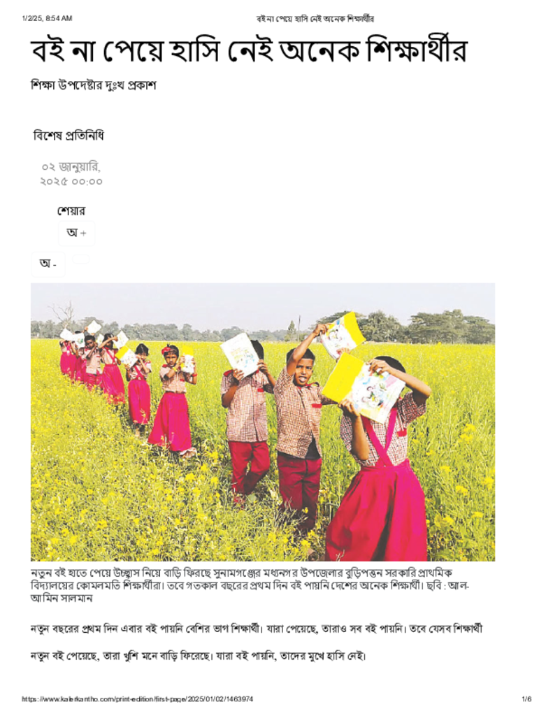 বই না পেয়ে হাসি নেই অনেক শিক্ষার্থীর.pdf Published on 02 January 2025 Newspaper দৈনিক কালের কন্ঠ Category Book Day Download