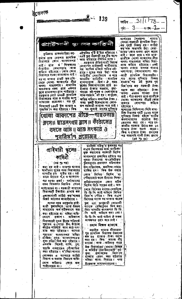 প্রা্থমিক বিদ্যালয়ের মঞ্ঝুরী চাই Published on Newspaper দৈনিক বাংলা Category General Education Download