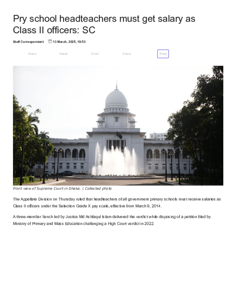 New Age _ Pry school headteachers must get salary as Class II officers_ SC.pdf Published on 13 March 2025 Newspaper New Age Category Educational Ministry / Departments Education Ministry / Division / Directorate Download