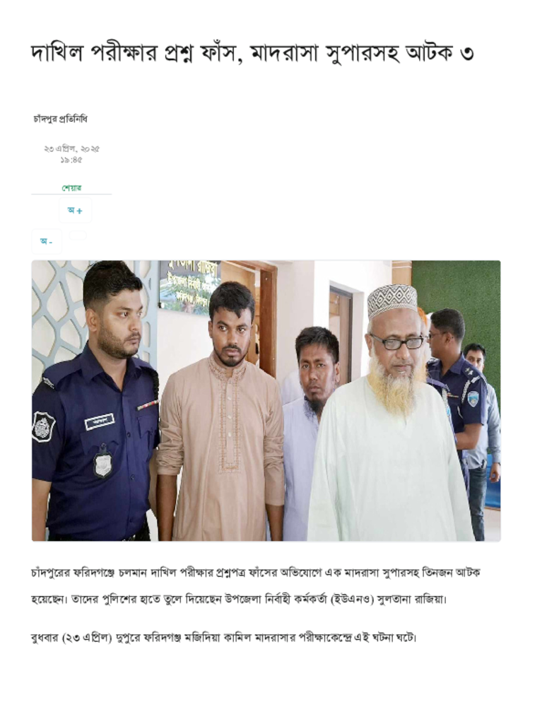 দাখিল পরীক্ষার প্রশ্ন ফাঁস, মাদরাসা সুপারসহ আটক ৩.pdf