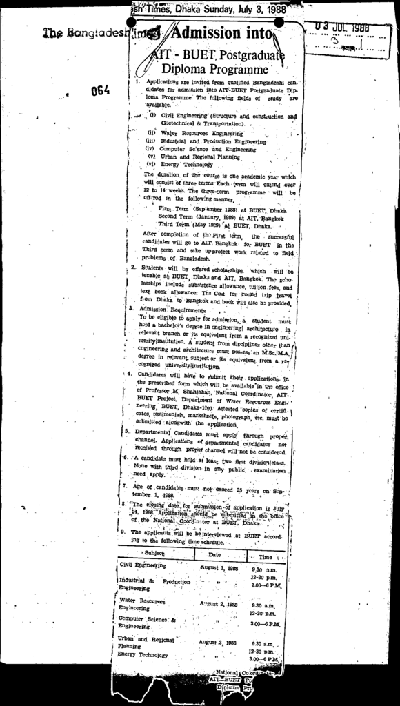 Admission into ait buet postgraduate diploma programme Published on Newspaper The Bangladesh Times Category Professional Education Professional Education Engineering Download