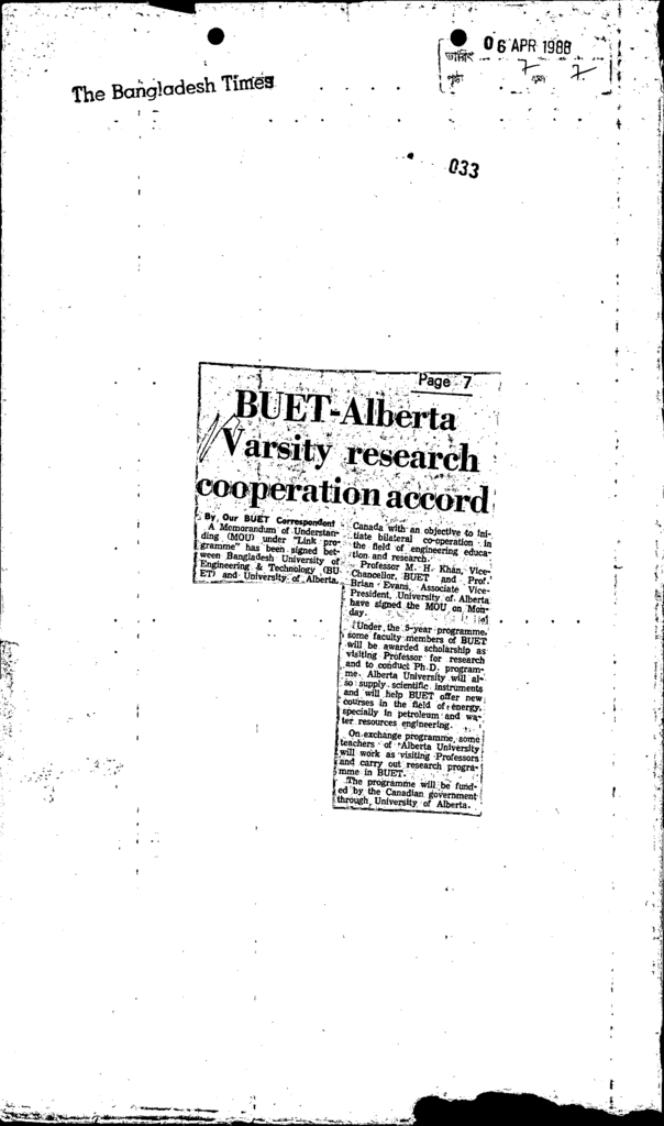 Buet-alberta varsity research cooperation accord Published on Newspaper The Bangladesh Times Category Professional Education Professional Education Engineering Download