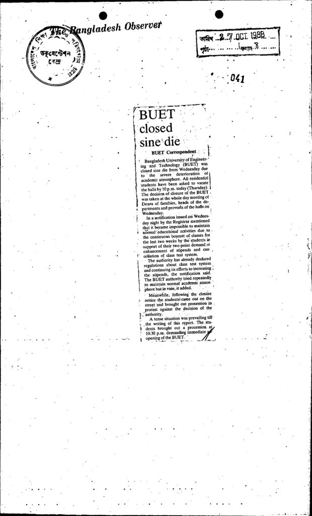 Buetcoosed sine die Published on Newspaper The Bangladesh Observer Category Professional Education Professional Education Engineering Download