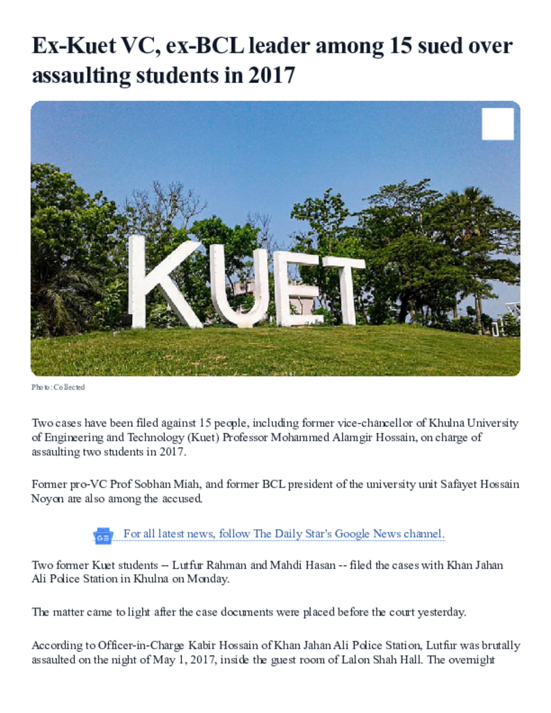 Ex-Kuet VC, ex-BCL leader among 15 sued over assaulting students in 2017 _ The Daily Star.pdf Published on 16 April 2025 Newspaper The Daily Star Category Others General Education Download
