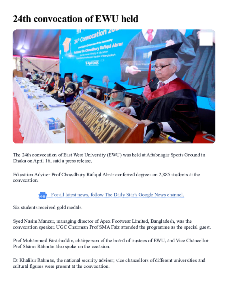 24th convocation of EWU held _ The Daily Star.pdf Published on 20 April 2025 Newspaper The Daily Star Category General Education General Education Download