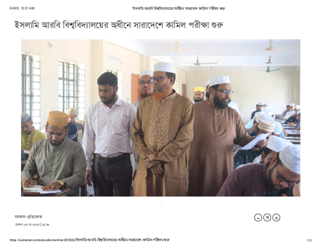 ইসলামি আরবি বিশ্ববিদ্যালয়ের অধীনে সারাদেশে কামিল পরীক্ষা শুরু.pdf Published on 03 May 2025 Newspaper দৈনিক সমকাল Category Madrasah Education Madrasah Education Alia Download