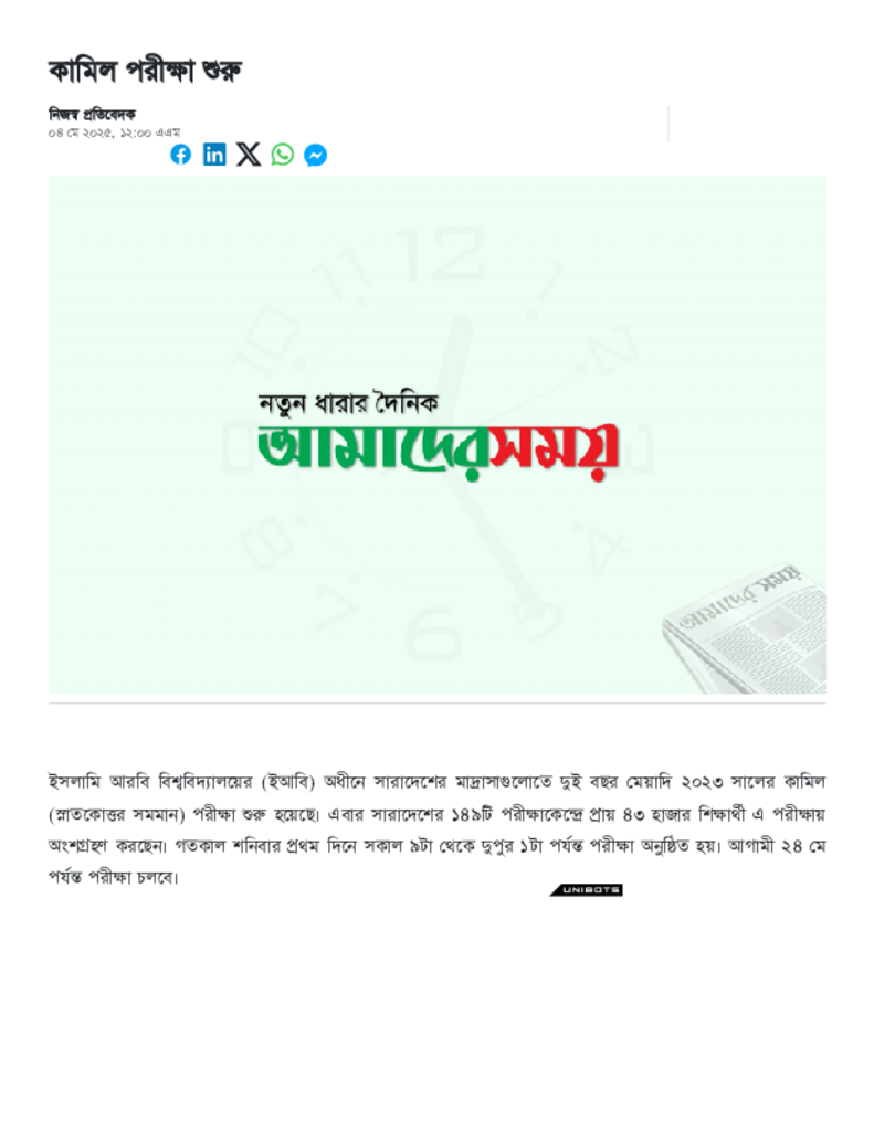 কামিল পরীক্ষা শুরু.pdf Published on 04 May 2025 Newspaper দৈনিক আমাদের সময় Category Madrasah Education Madrasah Education Alia Download