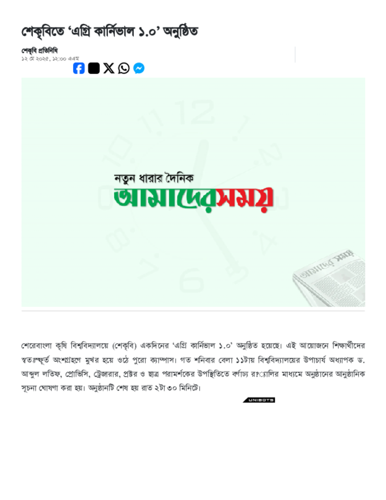 শেকৃবিতে ‘এগ্রি কার্নিভাল ১.০’ অনুষ্ঠিত.pdf Published on 12 May 2025 Newspaper দৈনিক আমাদের সময় Category Professional Education Download