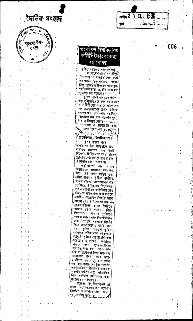 প্রকৌশল বিশ্ববিদ্যালয় অনির্দিষ্টকালের বন্ধ ঘোষণা Published on Newspaper দৈনিক সংবাদ Category Professional Education Professional Education Engineering Download