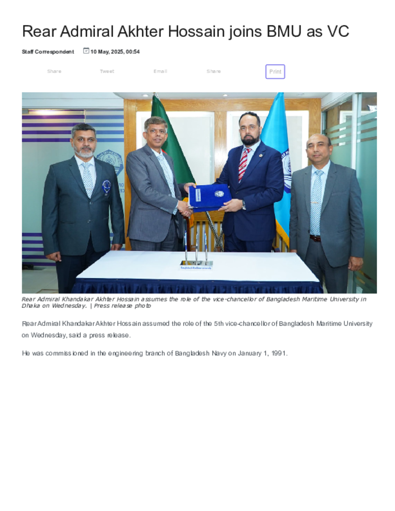 New Age _ Rear Admiral Akhter Hossain joins BMU as VC.pdf Published on 10 May 2025 Newspaper New Age Category Professional Education General Education Download