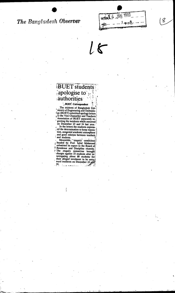 Buet students apologise to authorities Published on Newspaper The Bangladesh Observer Category Professional Education Professional Education Engineering Download