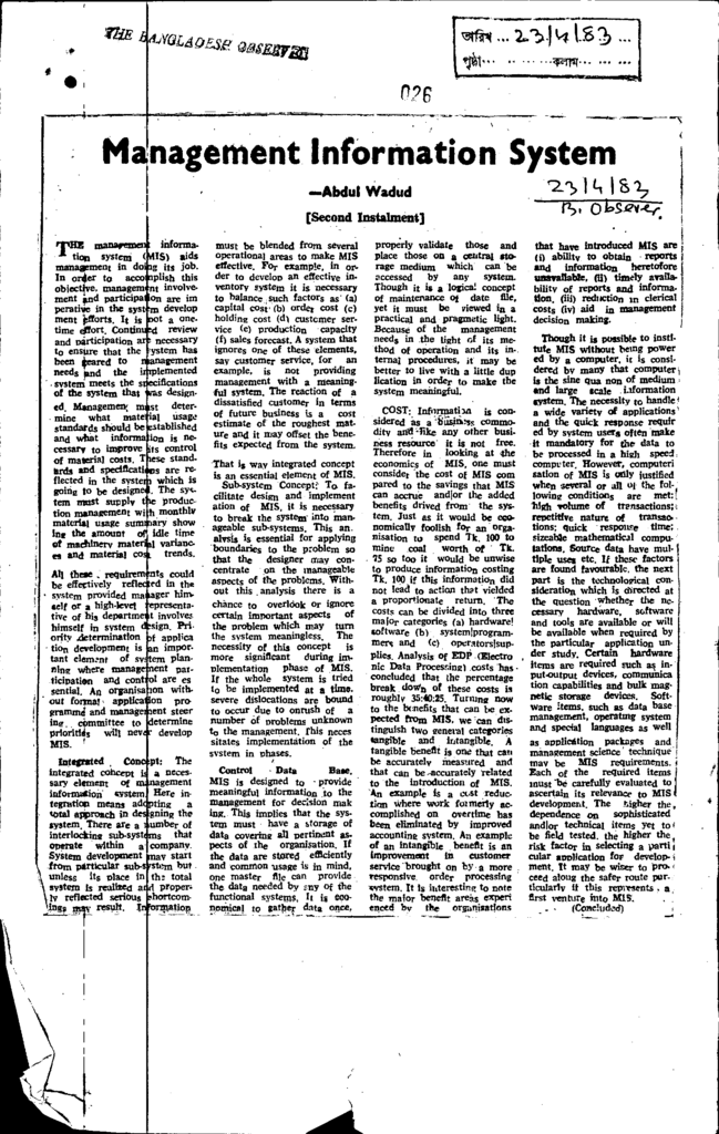 Management information stystem Published on Newspaper The Bangladesh Observer Category Admission / Seat Problem Download