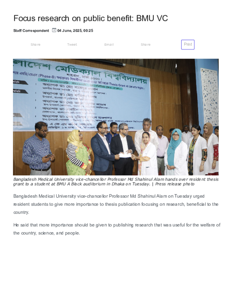 New Age _ Focus research on public benefit_ BMU VC.pdf Published on 04 June 2025 Newspaper New Age Category Professional Education General Education Download