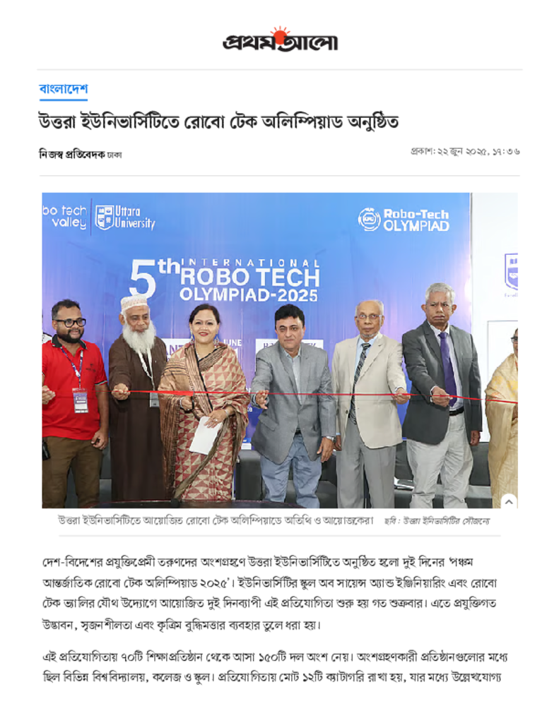 উত্তরা ইউনিভার্সিটিতে রোবো টেক অলিম্পিয়াড অনুষ্ঠিত _ প্রথম আলো.pdf Published on 22 June 2025 Newspaper দৈনিক প্রথম আলো Category Science Education General Education Download